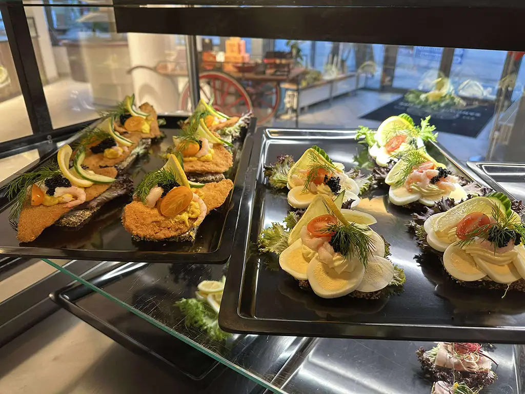 Du kan altid afhente smørrebrødet i butikken. Afhængigt af antal og adresse kan vi også tilbyde levering – spørg ved bestilling, så oplyser vi muligheder og pris.